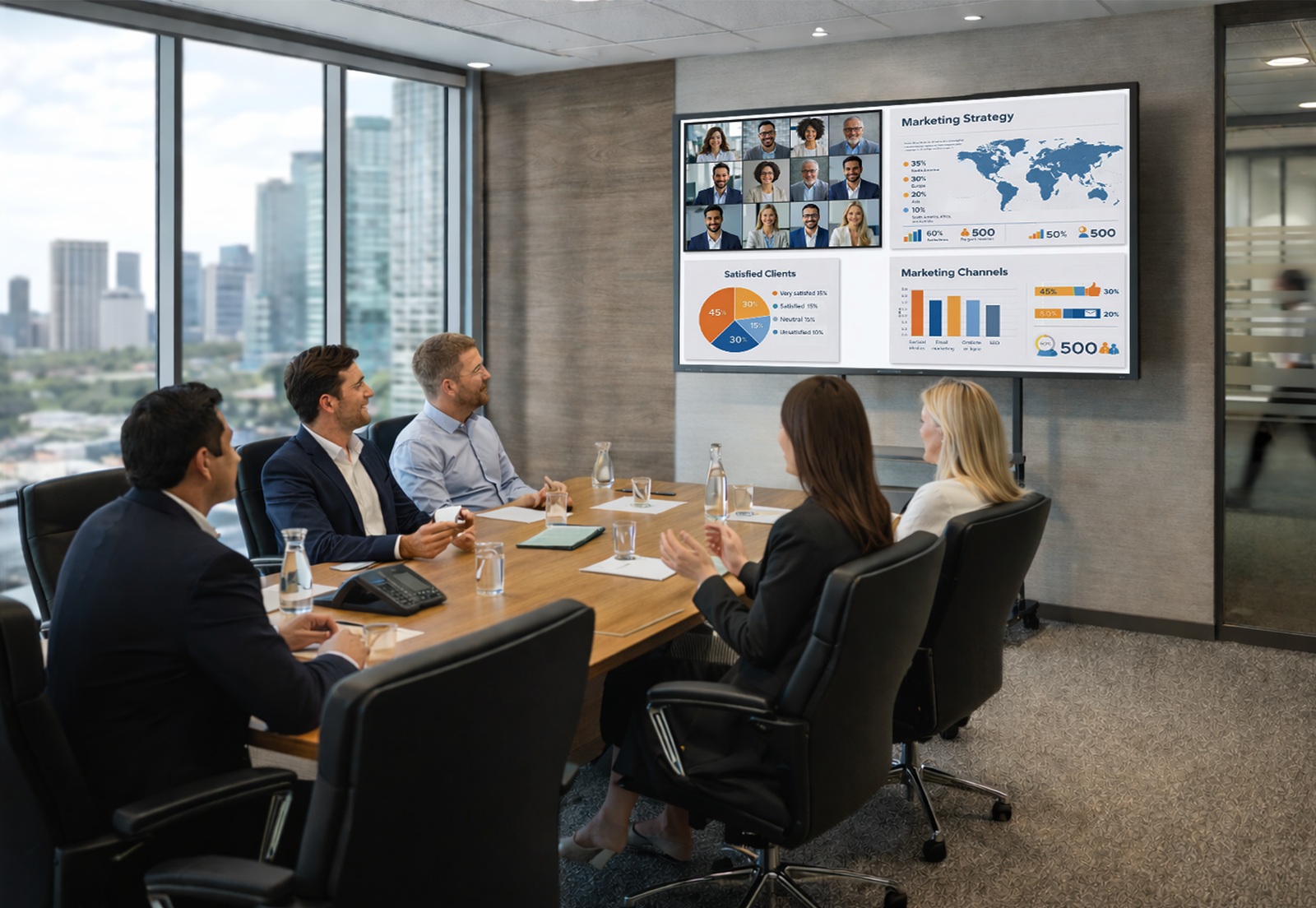 Access to this premium teleconference screen turns every session into a highly engaging, productive workshop. Designed for seamless performance in boardrooms, training centers, and huddle spaces, the Smart Interactive Display is the ultimate tool to power your team's best ideas.