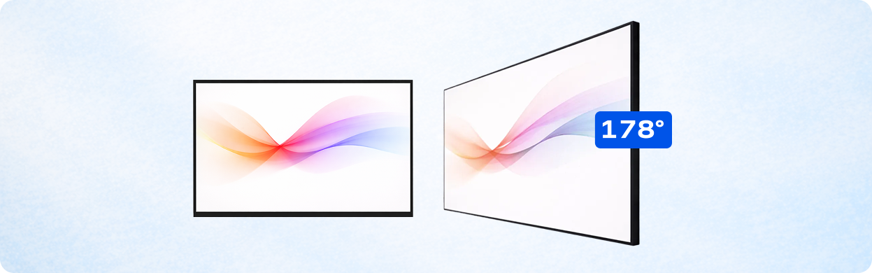- มุมมองกว้างถึง 178° เห็นภาพชัดแม้มองจากด้านข้าง เหมาะสำหรับพื้นที่สาธารณะและร้านค้า